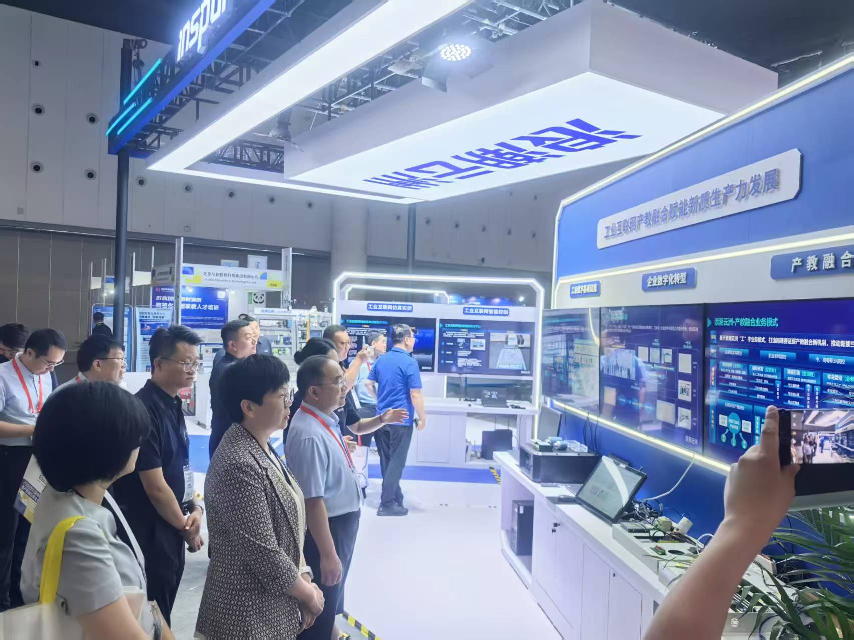 展会现场,多位教育主管部门领导亲临展位调研指导,对该设备的技术创新性和实用价值给予了充分肯定。同时,众多参展企业代表也被吸引驻足咨询,学院参会教师现场进行设备演示,并详细讲解系统结构与设备功能,与部分企业及院校围绕产教融合的开展形式展开了深入交流,现场气氛热烈。