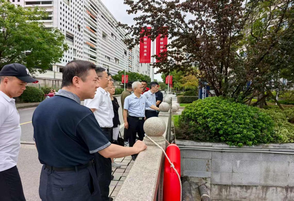 调研组一行还来到庄桥河道现场察看雨污分流、雨水管网养护等情况,深入了解目前学校生活污水排放、防涝基础设施运维状况。
