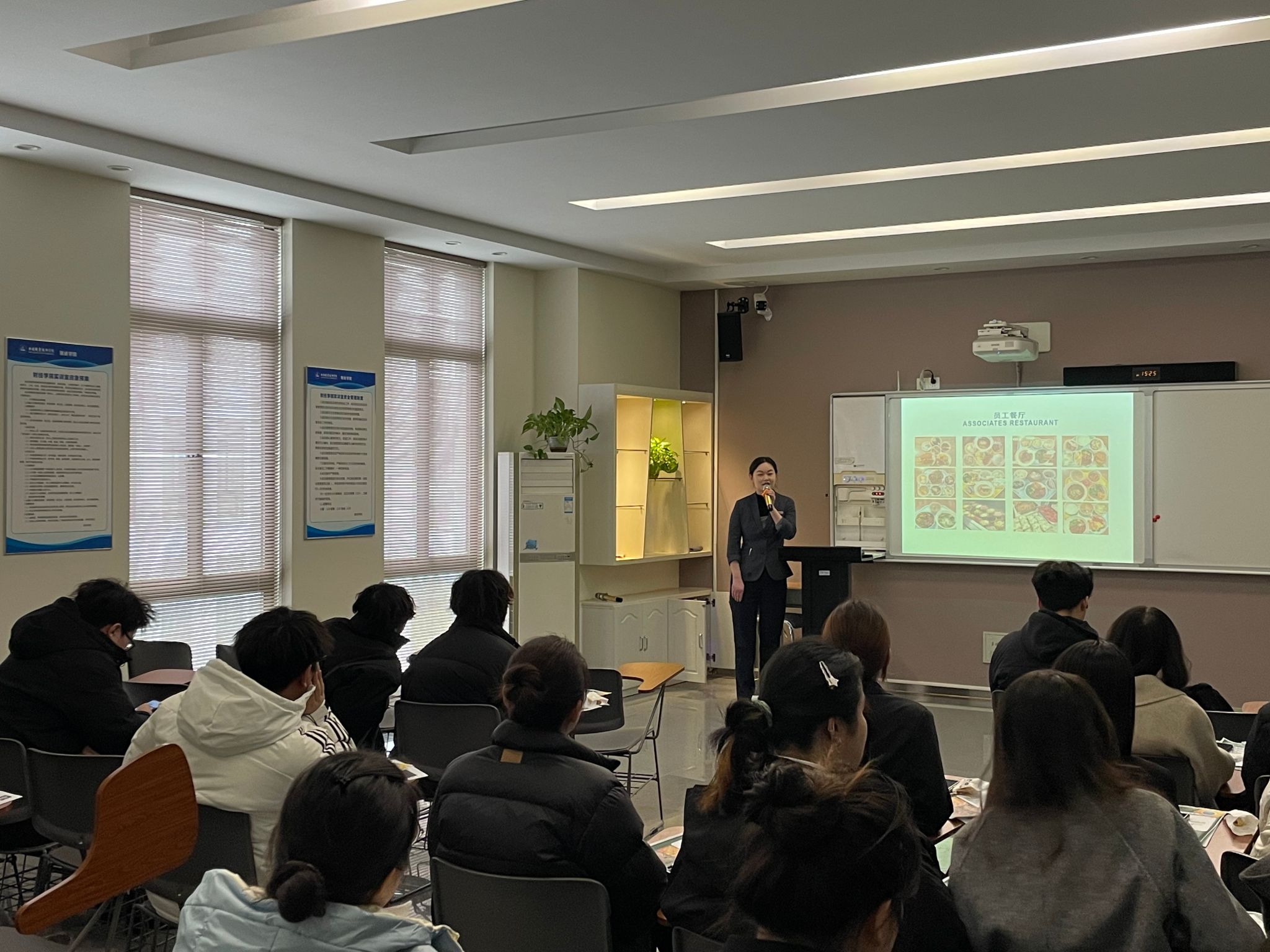 作为无锡苏宁凯悦酒店餐厅经理,石双双校友结合自身经历展开分享。她回顾了从乐动平台毕业后,如何从基层服务岗位起步,逐步成长为酒店管理者的历程,强调“扎实的专业知识、持续的学习能力和主动担当的职业精神”是突破职业瓶颈的关键,并鼓励学弟学妹珍惜在校实践机会,及早谋划未来职业发展,积极参与行业交流活动,拓宽职业视野。精彩的分享赢得现场同学热烈的掌声。