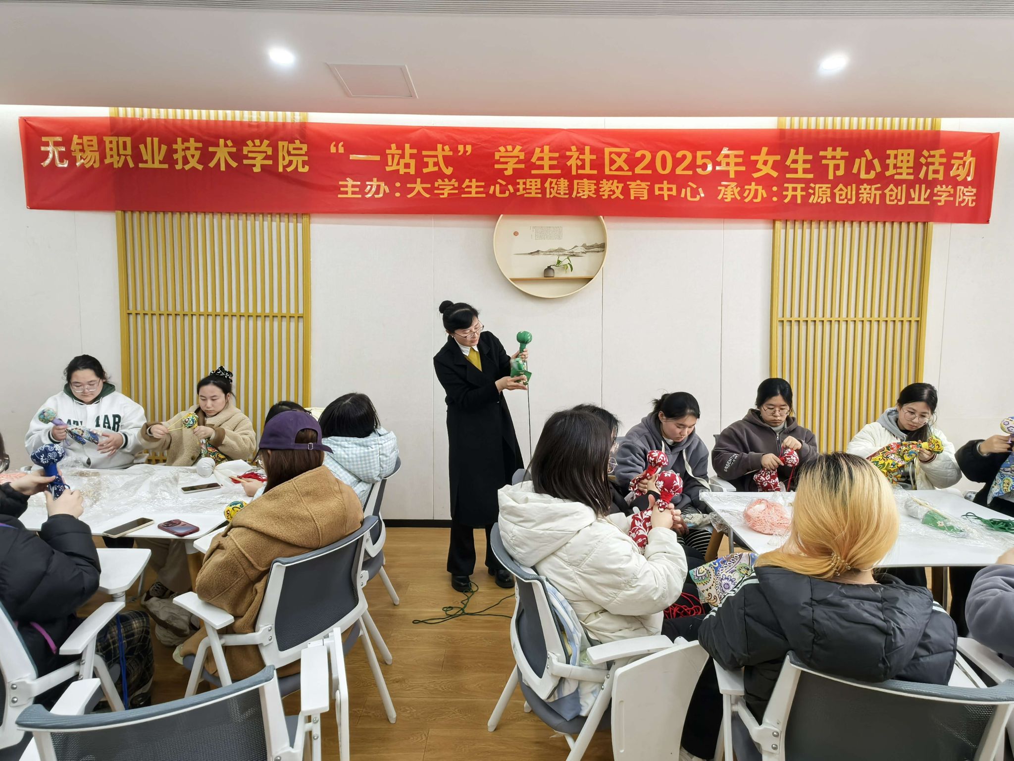 为关爱女性身心健康,迎接妇女节的到来。3月6日,大学生心理健康中心联合双创学院在学校心理团体辅导室103开展“爱在心中 爱你爱我”艾草锤制作活动。学校心理辅导员、关工委老同志以及50多名女同学参与了本次活动。