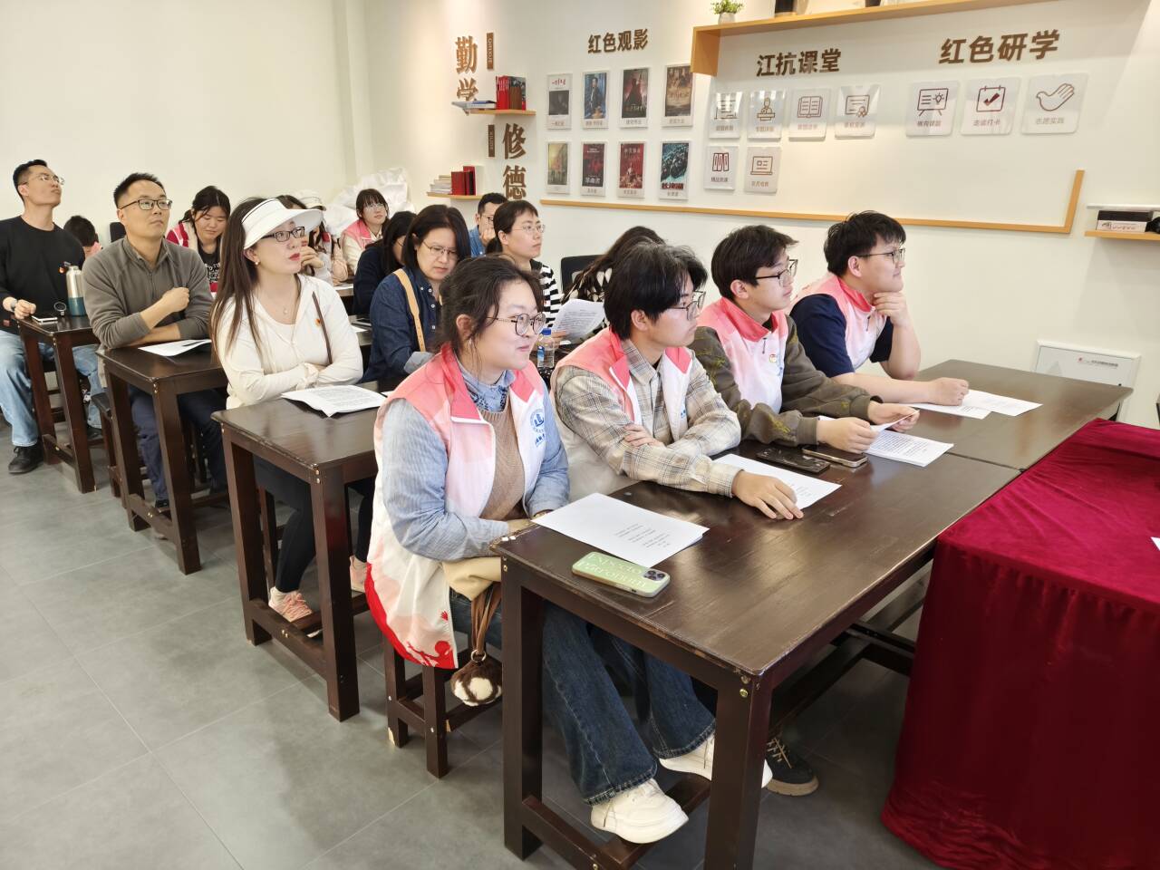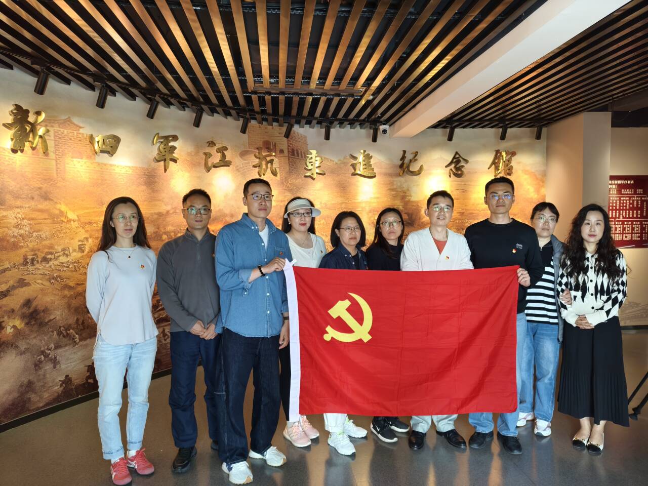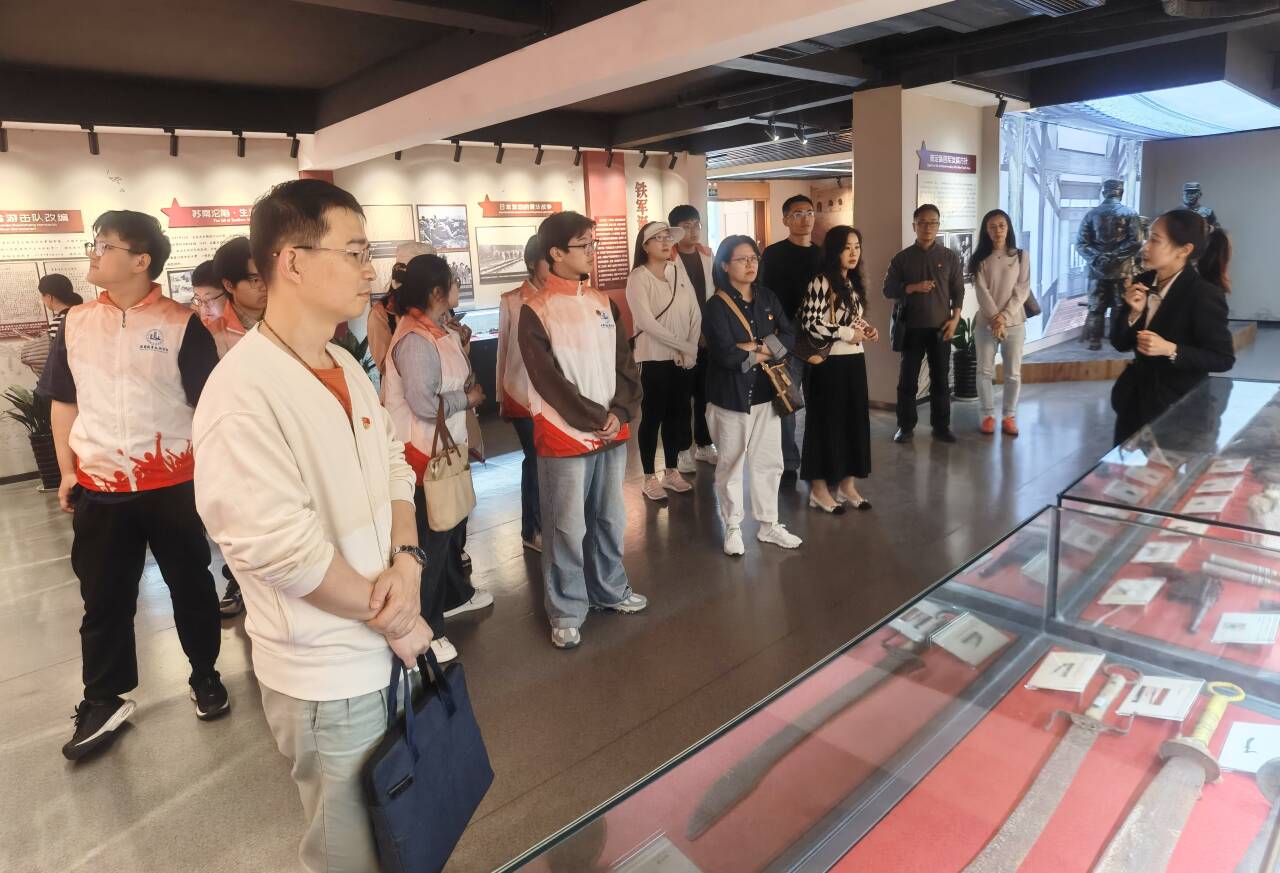 在第30个世界读书日到来之际,为纪念中国人民抗日战争暨世界反法西斯战争胜利80周年,4月22日,马克思主义学院党总支思想道德与法治教研室党支部教师带领习近平新时代中国特色社会主义思想青年学社学生赴新四军江抗东进纪念馆开展了一场特别的党史学习教育“立体阅读”主题活动。通过实地参观、文献研读、现场教学等形式,将红色教育与读书实践深度融合,引导师生在历史场景中感悟抗战精神、汲取奋进力量。